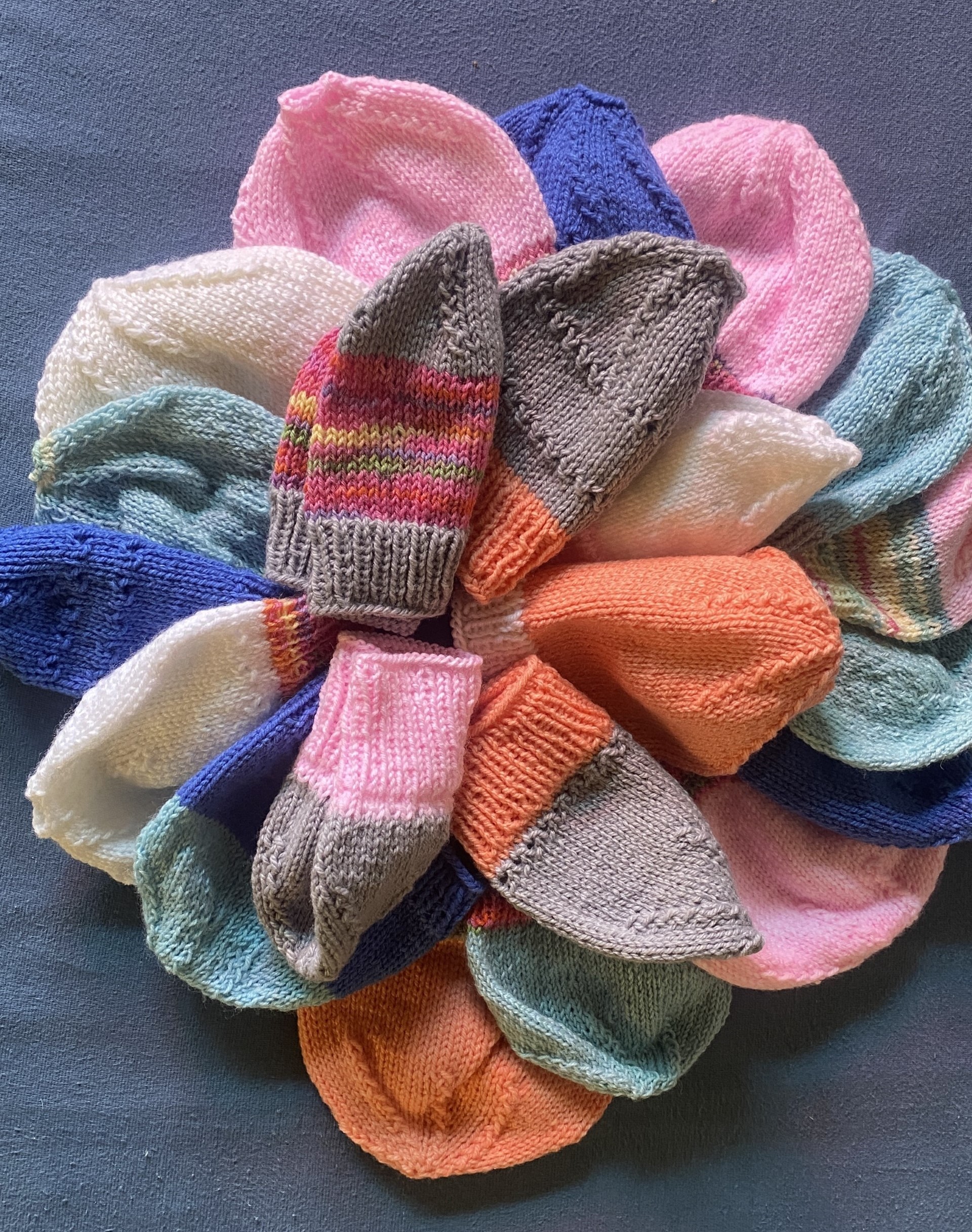 und Christine war auch wieder fleißig, nur sind die Sockerl etwas kleiner, für unsere Babystationen und Moni hat Mützennachschub gebracht!