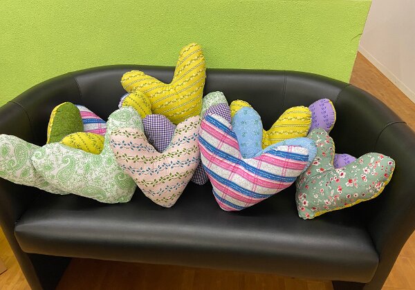 Die Frauenbewegung näht für Brustkrebs Patienten ... Brustkrebs Patienten bekommen die Kissen von der Klinik nach der OP