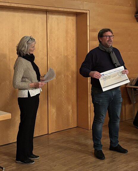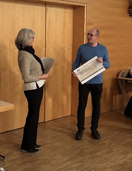 Pfr. Przybylski erhielt 500 Euro für die Pflanzung eines Baumes im Rahmen der Baumpflanzchallenge und einen Obulus für die Nutzung des Pfarrheims