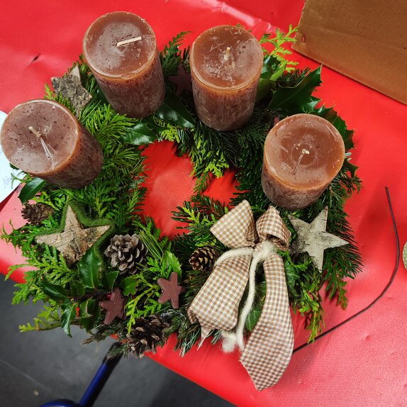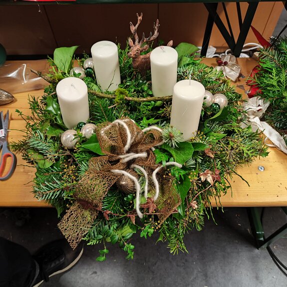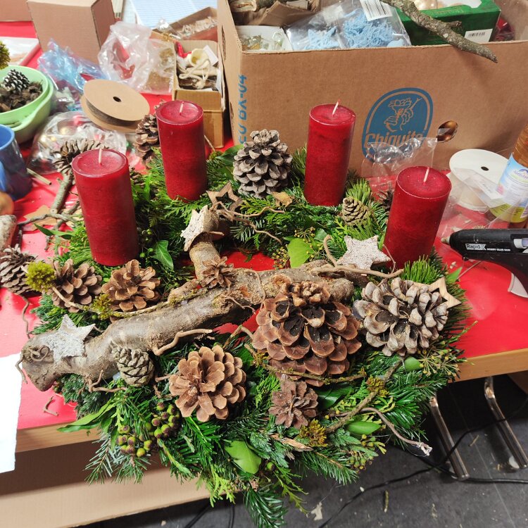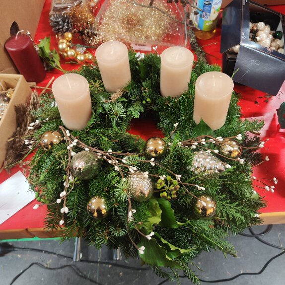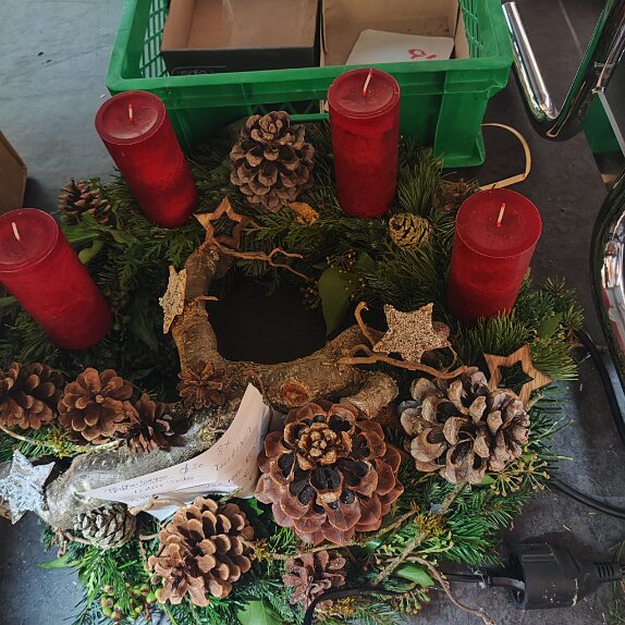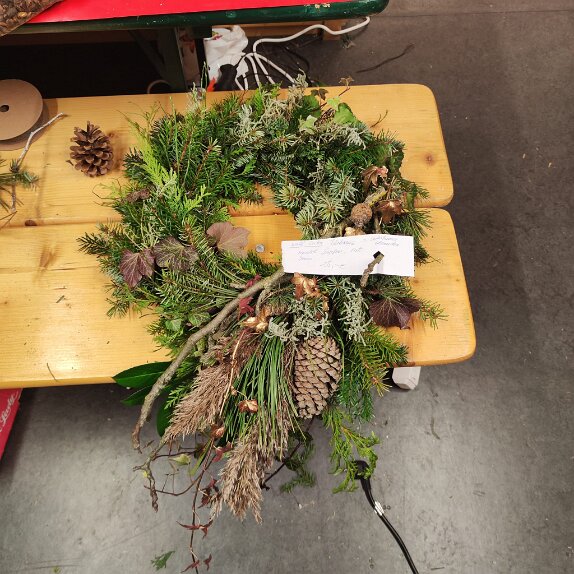 Herzlichen Dank für Ihre Spende Kommt ein Wagen voll beladen mit Daxn viele Hände, schnelles Ende Vergelt´s Gott Peter und Schorsch für eure Hilfe Anni räumt zusammen ...und schon kommen die ersten fertigen Adventskränze, insgesamt wurden 160 Stück gebunden und verziert, herzlichen Dank allen Helferinnen Adventfeier 8.12.25Fermentieren 25.10.25