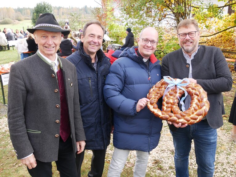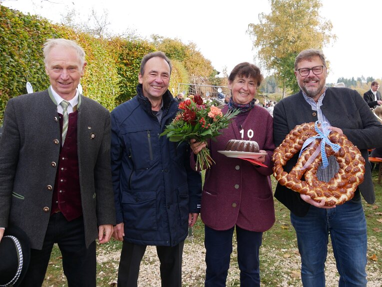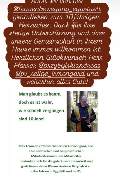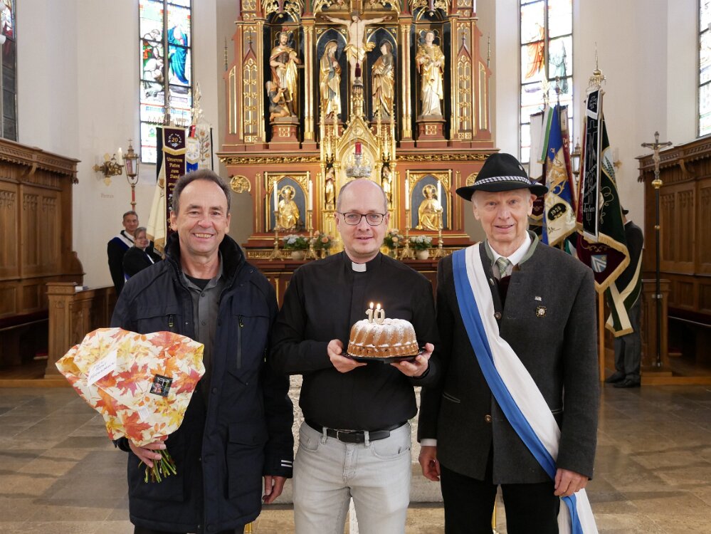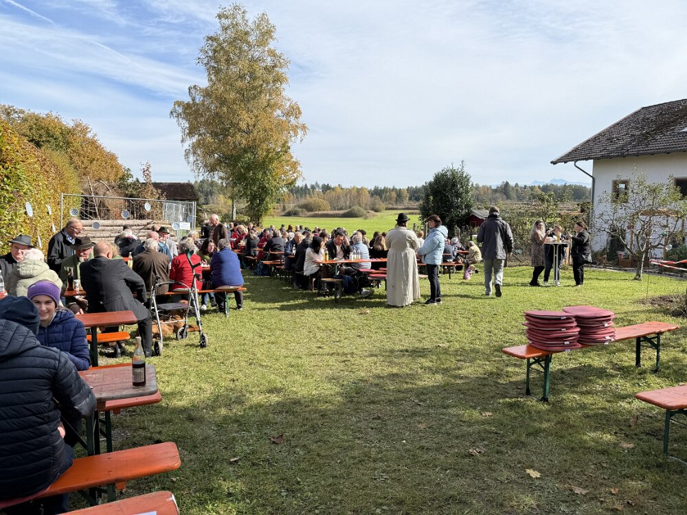 alles ist bereit Aufstellung der Fahnen vor dem Gottesdienst Herr Pfarrer hat sein 10jähriges Jubiläum in Eggstätt Hendl und Pizza gab´s zu Mittag zur Unterhaltung spielte die Zwergerlkapelle viele viele wunderschöne Torten und Kuchen konnten wir am Pfarrfest verkaufen und Kirtanudeln natürlich auch lecker Nußecken Quarkbällchen und unsere Resi Kreuzmeier ist auch schon 10 Jahre bei uns, wir sind sehr froh Resi an unserer Seite zu haben! von der Gemeinde gab es für Resi und Herrn Pfarrer eine 10er Breze die Kirtahutschn war immer gut besetzt Fermentieren 25.10.25Kreativ Kränze binden 18.10.25