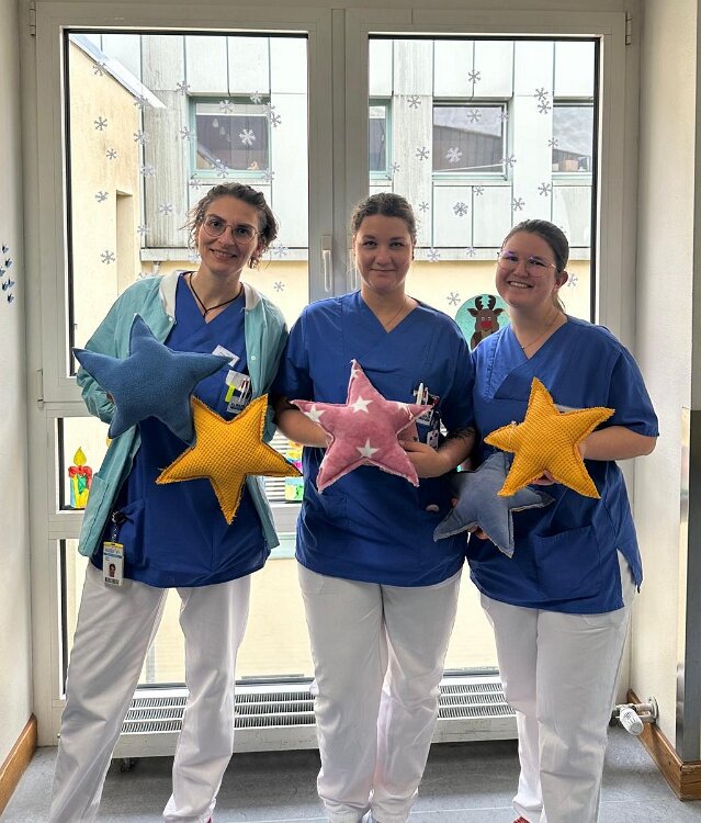 Leinsamensäckchen für die Babys Übergabe der Sternkissen an die Kinderstation am Klinikum Traunstein, viel Freude den kleinen Patienten damit Herzliche Grüße vom Kiz Aschau Bergstationsteam, vielen lieben Dank für die Kissen, Dinos, Socken für unsere kleinen Patienten Marianne Rott war wieder sehr fleißig Cilli Fritz versorgt uns wieder gut mit Mützerl Maggi hat viele Taschenträger genäht Moni war fleißig Christine hat wieder gestrickt Berta strickt auch mit, Socken für Patientinnen mit Unterleibskrebs, warme Füße sind hier ganz wichtig mit dieser Banderole gehen die Socken auf Reisen Übergabe von 240 Mützen, 26 Paar Sockerl und 40 Stirnbänder an drei Stationen am Klinikum TS Diese Demenz-Muff gingen an die Klinik in Bad Reichenhall die Palliativ Station am RoMed Rosenheim freut sich über 32 Herzkissen Tina hat wieder fleißig genadelt Radltour nach Bernau 13.08.25Zwergerlgruppe