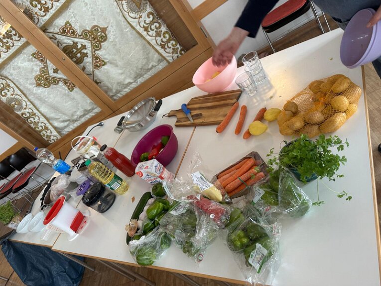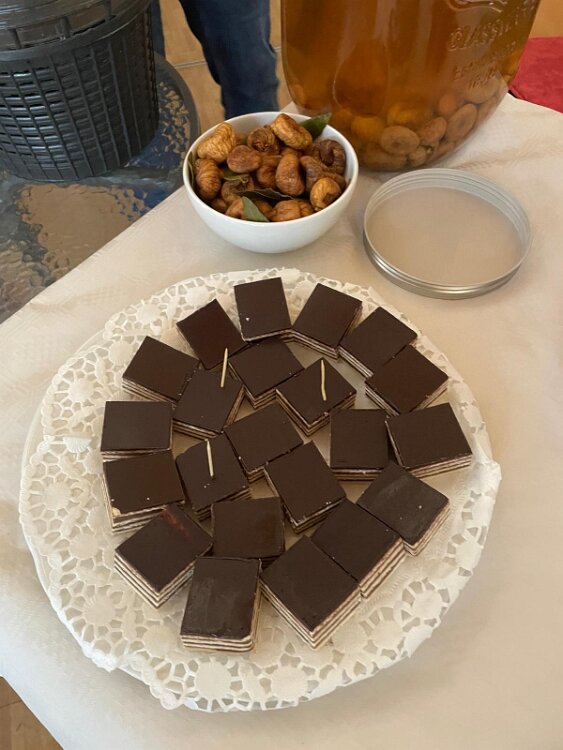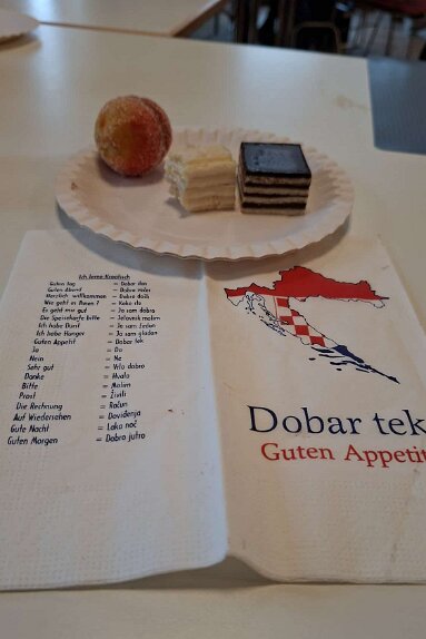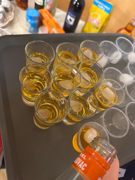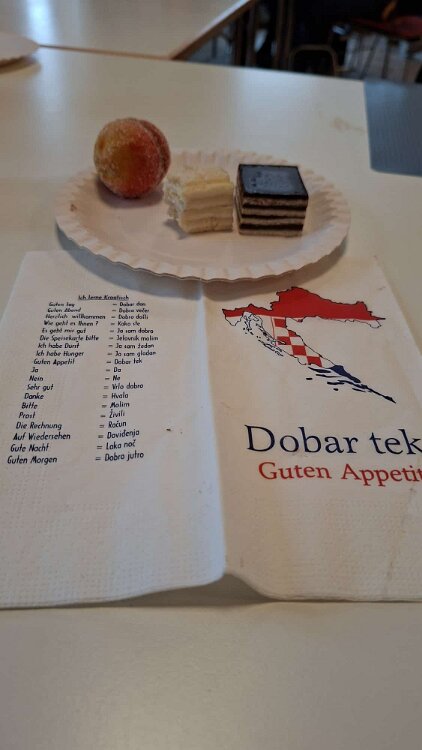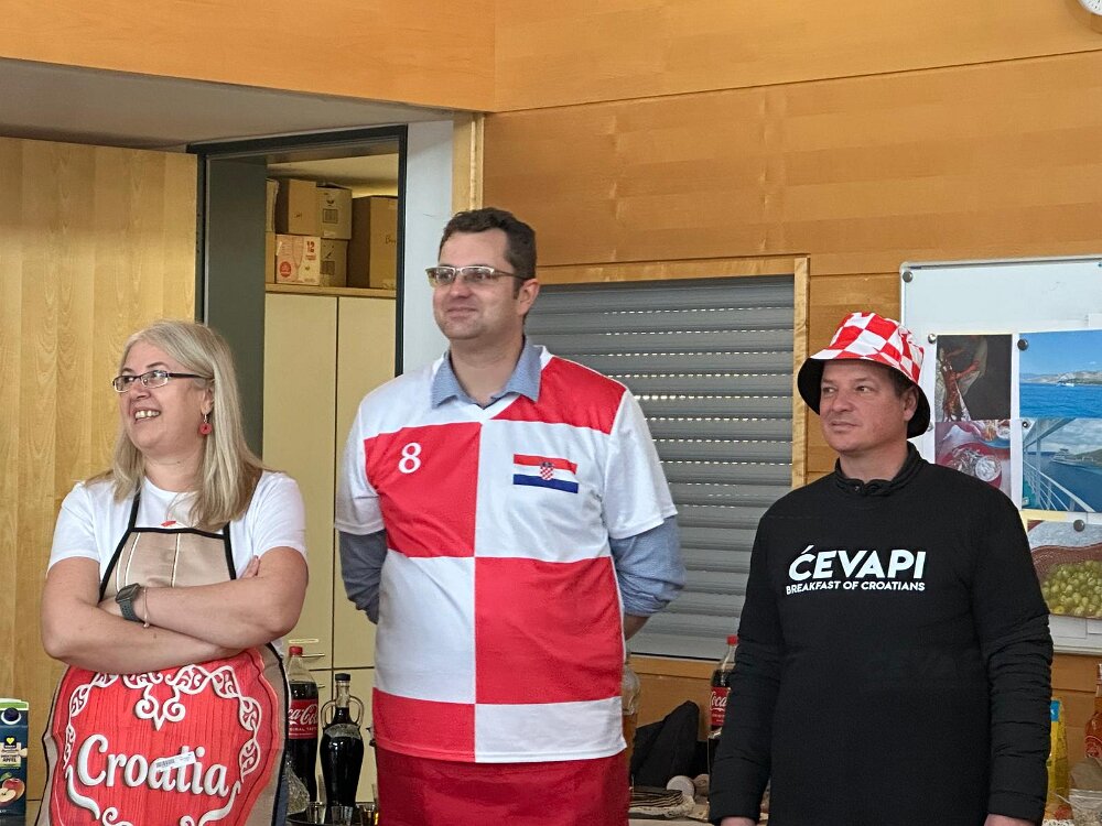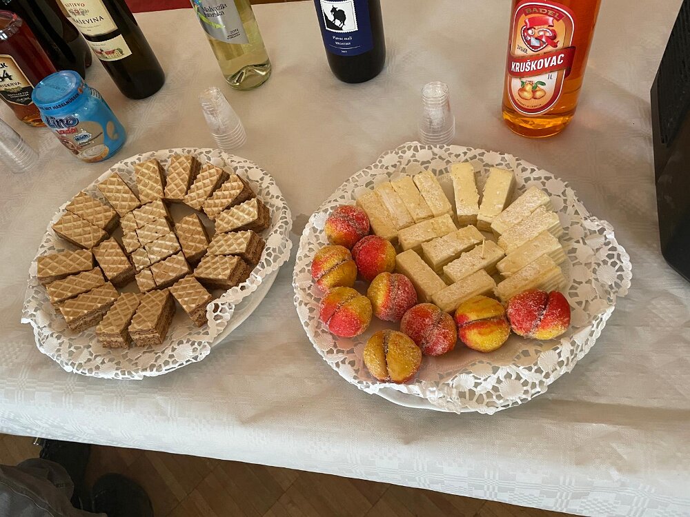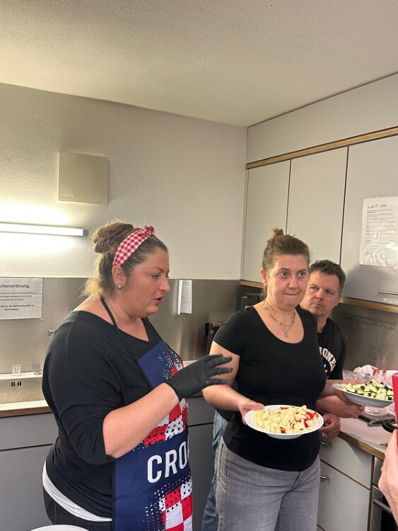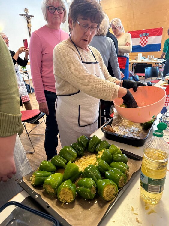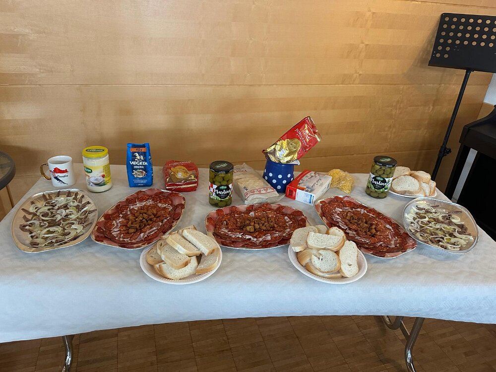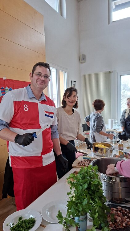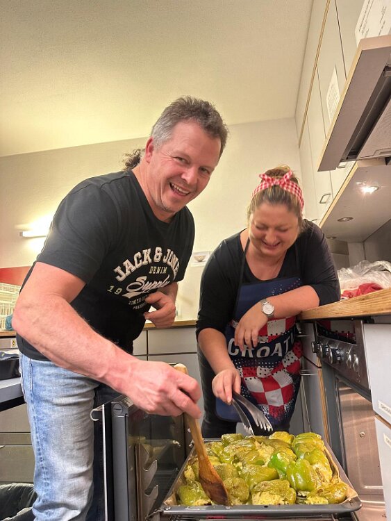 das Begrüßungsbuffett und der Begrüßungsschnaps darf nicht fehlen Herzlichen Dank an Marijana für die tolle Organisation Herzlichen Dank Jelena, Martin und Goran Alle Generationen waren mit Freude und Feuereifer dabei es wurde fleißig geschnippelt alles wird genau erklärt gefüllte Paprika der Küchenchef Gerhard
