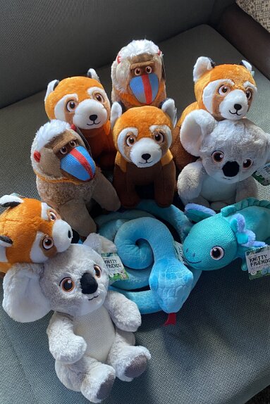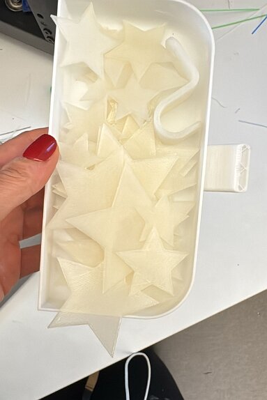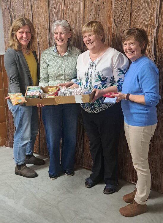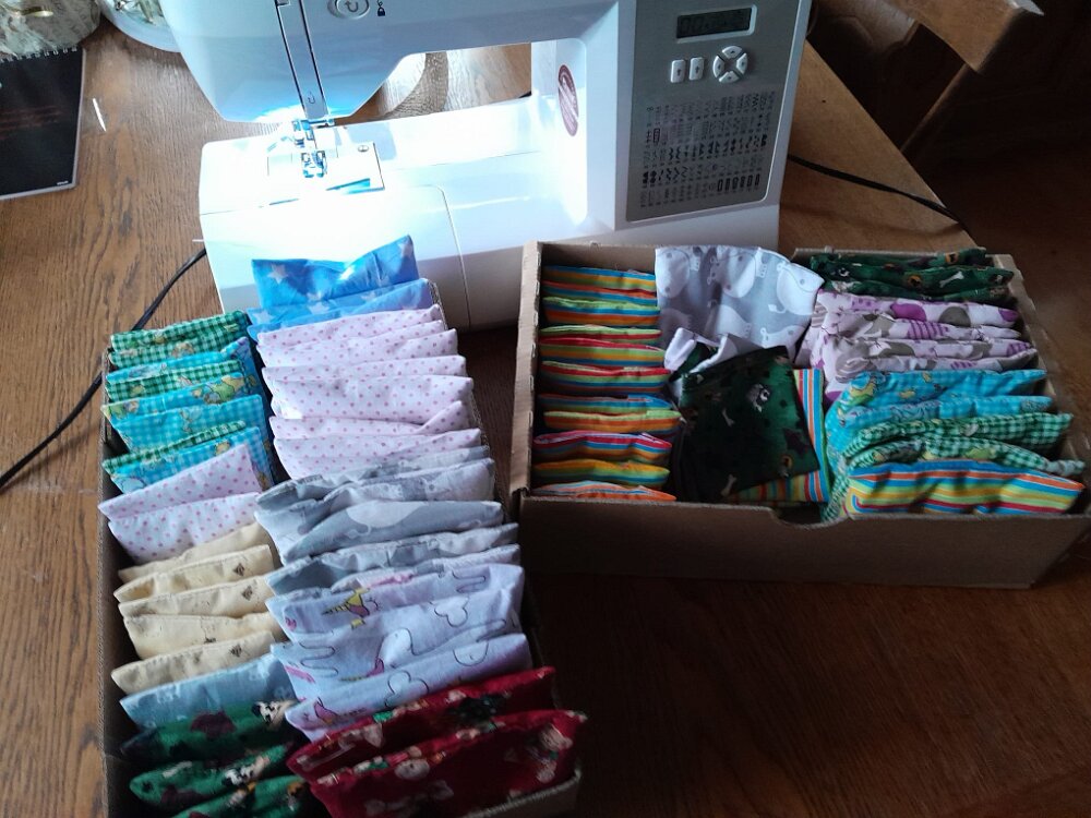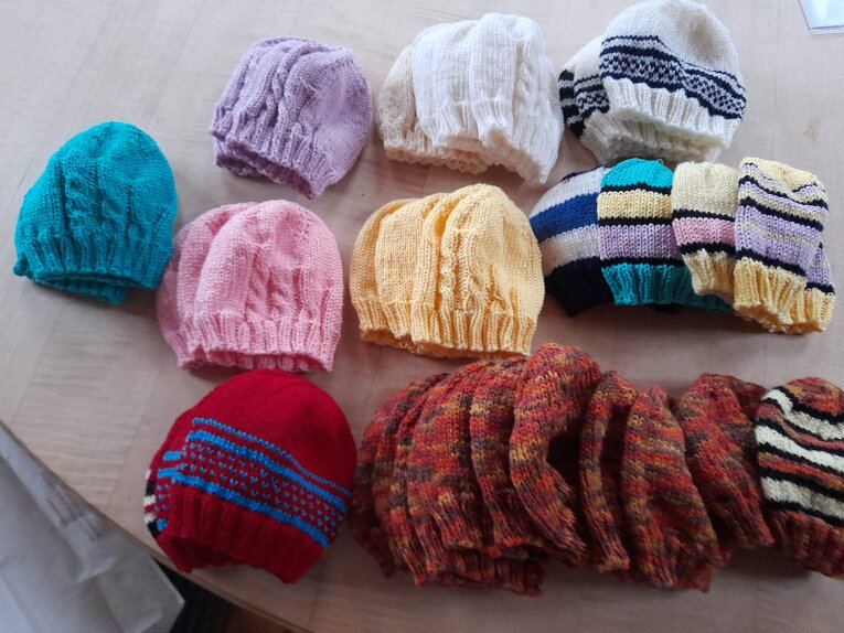 Übergabe der Leisamenkissen an Barbara Haneberg vom Bunten Kreis Rosenheim Leisamenkissen für Babys, wohltuend warm Überzüge für Kirschkernkissen für die Trissl Klinik Kuscheltiere für die Kinderstation in Traunstein zu Ostern, herzlichen Dank für die Spende an Lydia Spielsachen aus dem 3D Drucker von Leo für die Kinderstation TS zu Ostern ...und Leuchtsterne aus dem 3D Drucker Tina hat wieder gestrickt, Dankeschön Kroatisch Kochen 17.01.26Seifenkurs 13.02.26