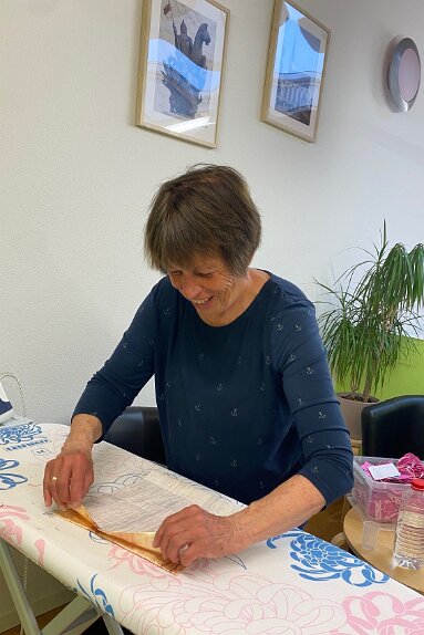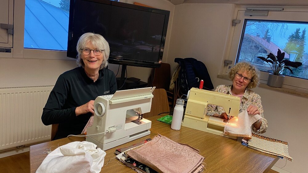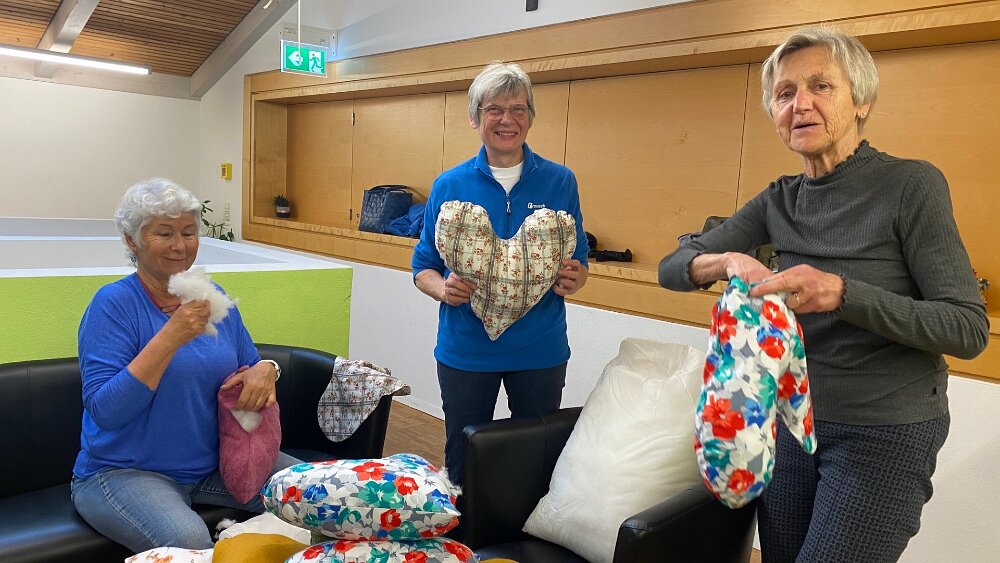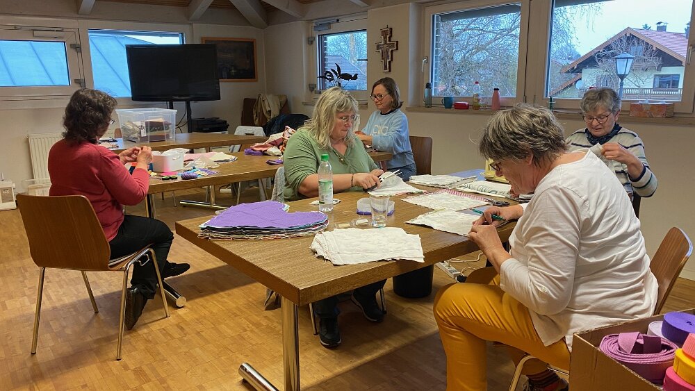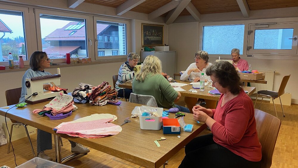 wir starten am 13.04.26 mit Herzkissen und Drainagetaschen vierzehn Damen unterstützen die Aktion fleißig Nähaktion 2026
