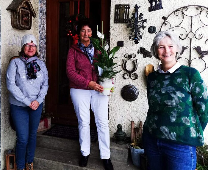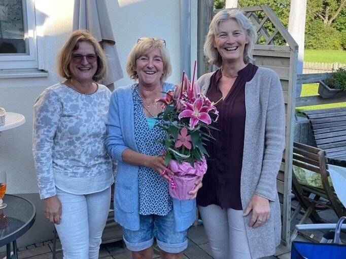 70. Geburtstag von Ingrid Langl (Mitte) Anfangs des Jahres 2021 mit Anni Kamysek (rechts) und Gabi Kynast-Obinger (links)