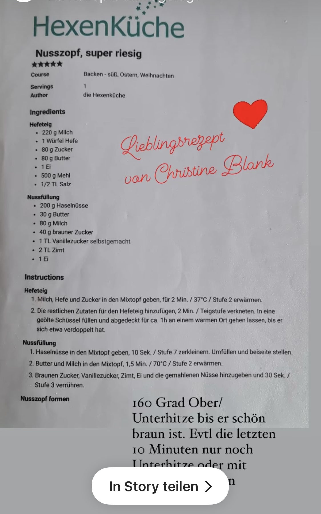 Christine Blank gibt uns ihr Nusszopf Rezept <<hier zum Ausdrucken>>